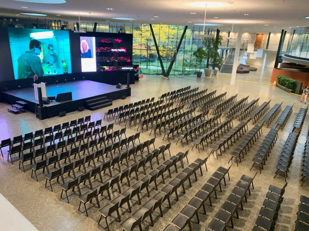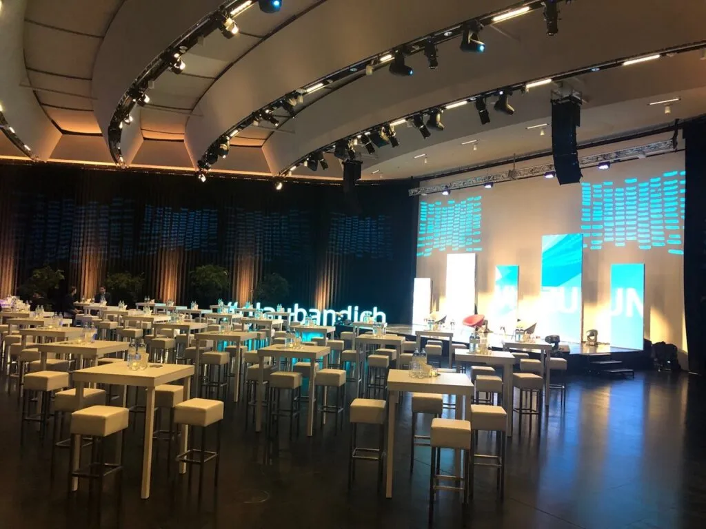 Das Atrium eignet sich als ausgesprochen flexible Location für den Begrüßungsbereich oder als eigene Fläche mit exklusivem Flair. Umgeben von der spektakulären Architektur des Erste Campus bietet das Atrium die ideale Erweiterung zur Grand Hall als Welcome Area, Cateringbereich oder Ausstellungsfläche. Dank der enormen Flexibilität eignet sich das Atrium aber auch hervorragend als eigenständiger, offener Eventbereich. Ob für sich, oder in Kombination mit dem Atrium, die großzügige Grand Hall bietet Raum für anregende Begegnungen und modernste Technik. Die großzügige und mit modernster Technik ausgestattete Grand Hall ist ideal für Konferenzen, Kongresse, Vorträge, Empfänge und Galadinner mittlerer Größe. Sie ist auch ideal in Kombination mit dem Atrium zu nutzen und ermöglicht damit Veranstaltungen mit bis zu 500 Personen. Das Auditorium bietet die Möglichkeit, mit Bühne und vorhandener Licht-, Ton- sowie LED Wall frontale Präsentationen und Talks vor Publikum zu veranstalten. Es eignet sich aber auch für die flexible Bestuhlung für Break-Out Sessions und Work-Groups. Die Offenheit und das moderne Ambiente bieten den idealen Rahmen für inspirierende und involvierende Events.