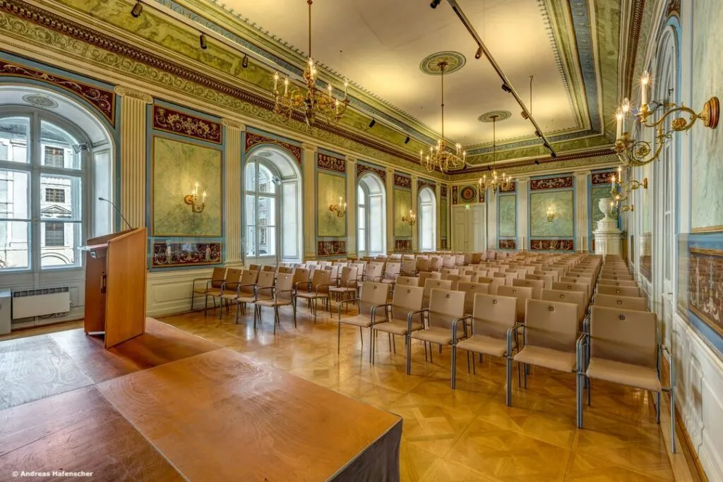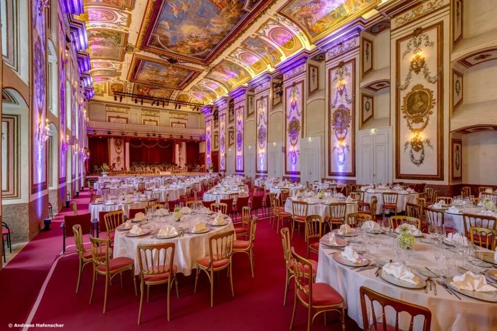 Ausstattung, finden in den unterschiedlichen Räumen zwischen 20 und 225 Gäste Platz. Die Prunkräume können einzeln oder gemeinsam