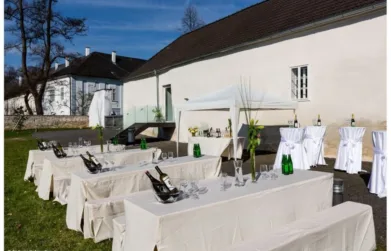 und wurde in den vergangenen Jahren zu einem modernen Veranstaltungsort ausgebaut. Der Veranstaltungstrakt von Schloss Lackenbach