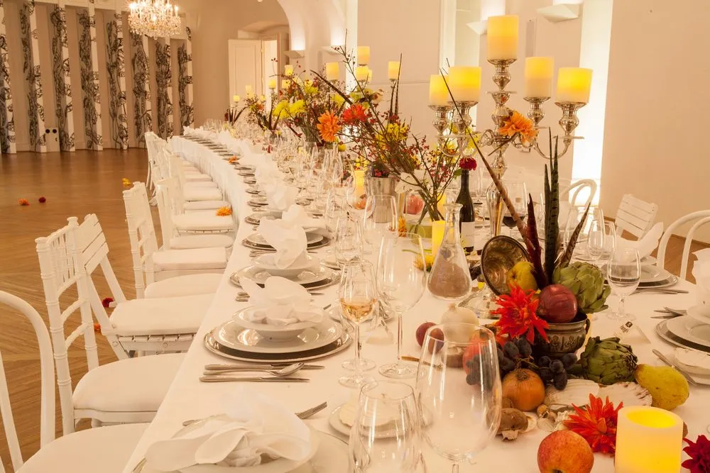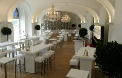 Die zehn unterschiedlichen Räume im Apothekertrakt werden durch großzügige Pausenbereiche miteinander verbunden. Mit der Terrasse im Orangeriegarten und dem Apothekerhof stehen elegante Außenbereiche zur Verfügung. Die Orangerie Schönbrunn mit ihren 700m2 bietet ausreichend Platz für die unterschiedlichsten Inszenierungen – von Dinner über Vortrag bis hin zur Ausstellung. Auch der Orangerie ist eine Terrasse in den mediterranen Orangeriegarten vorgelagert. Die Weißgoldzimmer und die große Galerie direkt im Schloss eignen sich hervorragend für imperiale Cocktails oder Dinners.