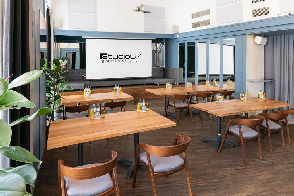 In einem pulsierenden Szeneviertel, von überallaus schnell erreichbar – das studio67 ist perfekt für Events fast aller Art. Modern und trotzdem edlem Design mit Panoramafenster ausgestattet. Licht- und Tontechnik, Multimedia-Tools reichlich Entertainment und mit eigenem kleinem feinen Hidden Club.