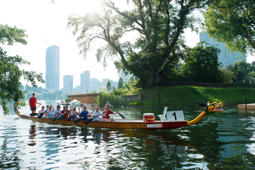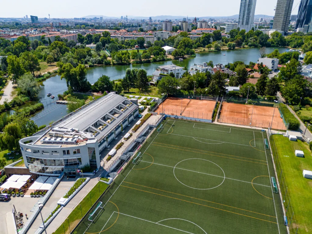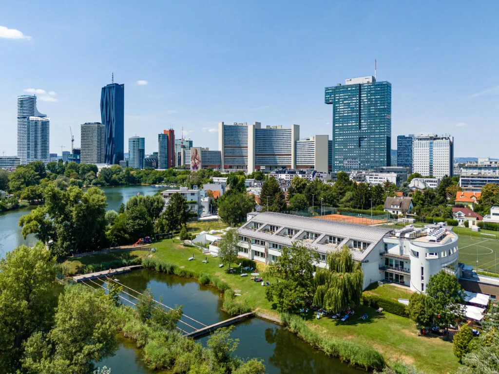 • wenige U-Bahn-Minuten vom Wiener City Center und direkt am Wasser der „Alten Donau“