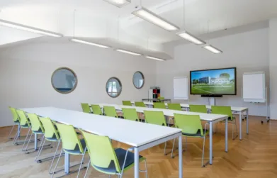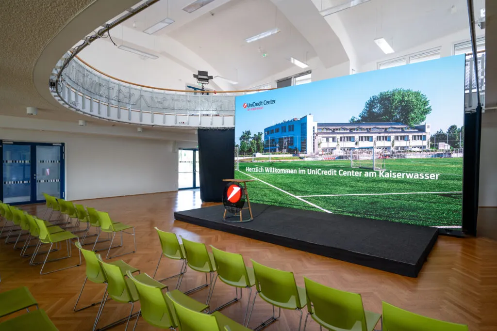 • modernste Medien- und Präsentationstechnik inklusive 7×4 Meter große LED-Wall